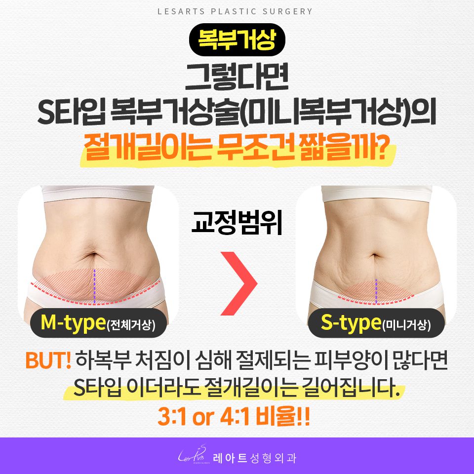 미니복부거상술(S-type) vs 전체복부거상술(M-type)