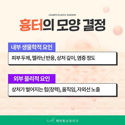 흉터는 크게 두 가지 힘에 의해 모양이 달라집니다.