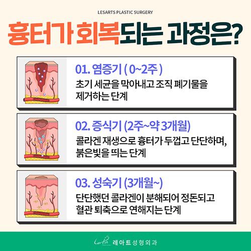상처가 회복된 후 흉터가 발생하게 됩니다.