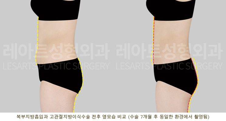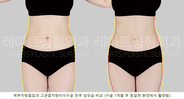 지방흡입 수술 결과에는 차이가 있을 수 있음.