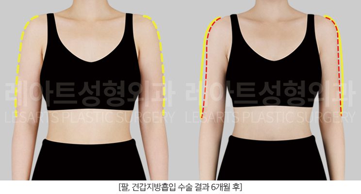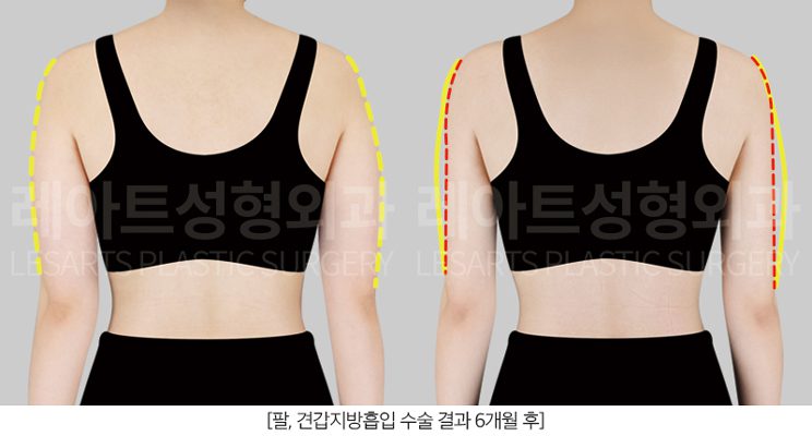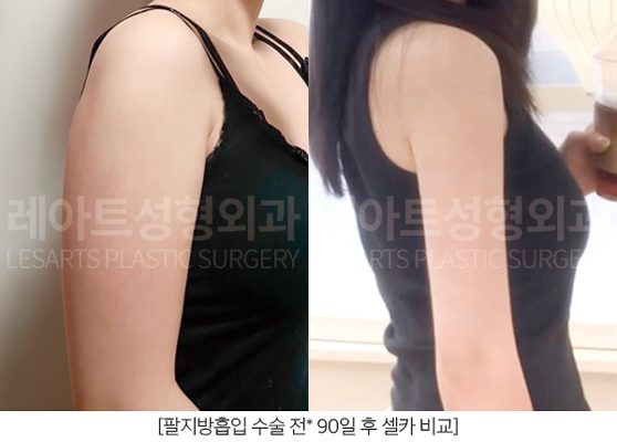 위 정면 사진은 팔지방흡입 수술 후