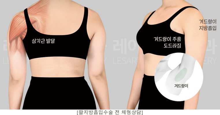 팔과 겨드랑이 지방흡입이 함께 이루어지며
