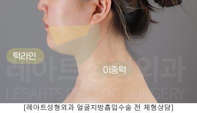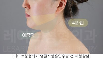 턱라인을 덮는 옆볼 아래 턱살로 인해