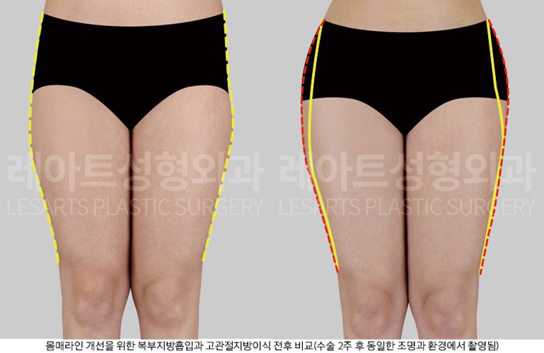 고관절 지방이식으로 인한 곡선 볼륨 변화가