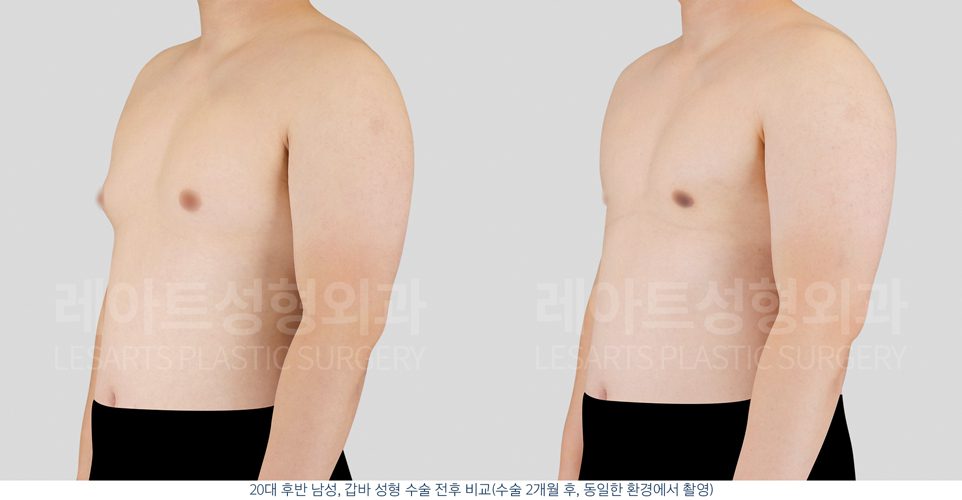 여유증 수술 후 2개월 차에 촬영된 모습으로,
