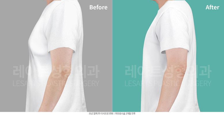 가슴 돌출의 원인이 된 유선을 절제하여