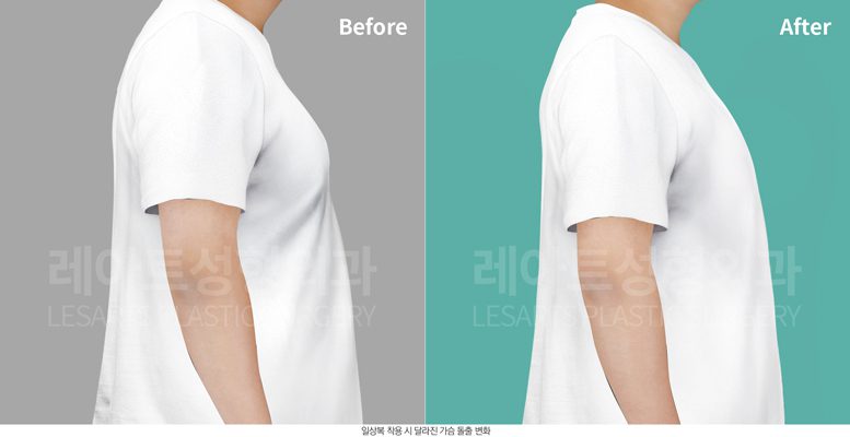 가슴 크기 증가와 전방 돌출을 인지하였고,