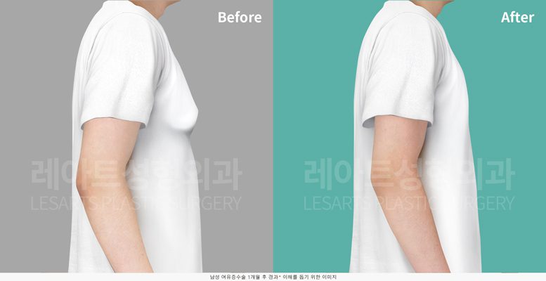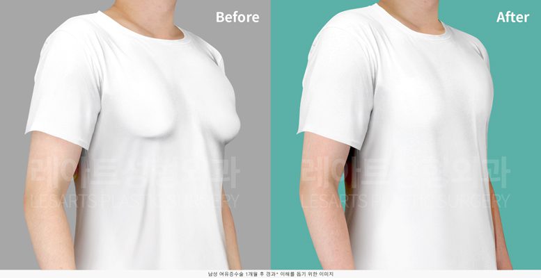 유륜비대가 동반된 남성 여유증 수술 1개월 후 티셔츠 핏 변화