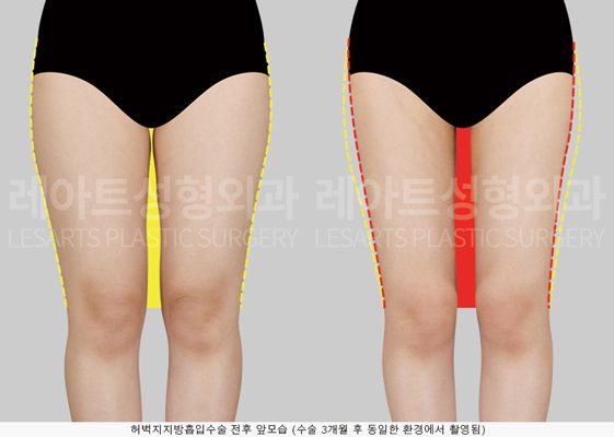 허벅지 지방흡입으로 뼈벅지 만들기, 수술 3개월 후 전후 변화