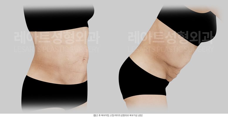 과거 복부지방흡입 이력과 출산 경험으로 인해