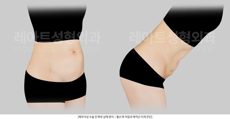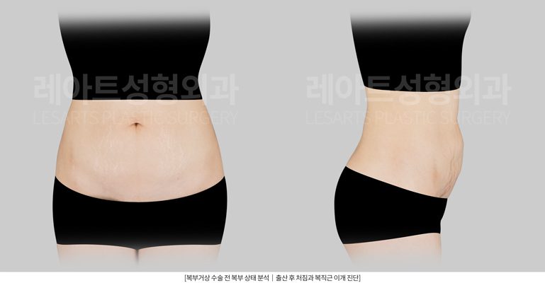 피부 탄력 저하와 복직근 이개, 유착이 겹치면서