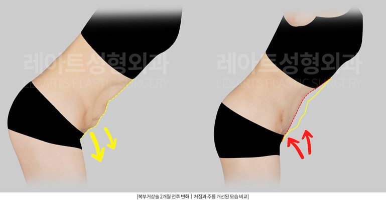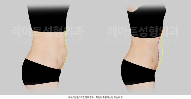 우측의 복부거상술과 복부지방흡입 후 사진을 보면