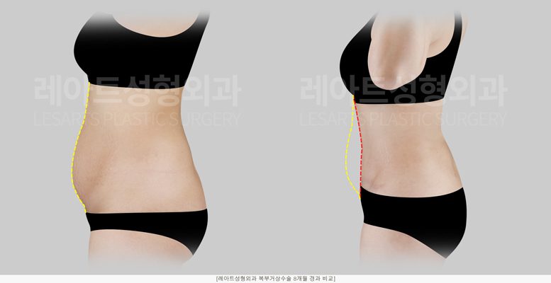 수술 전에는 아랫배 처짐으로 인한 돌출감과